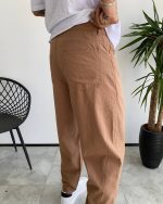 شلوار نیم بگ پارچه ای رنگ خاکی کد 5300