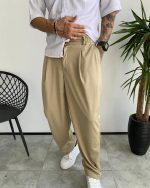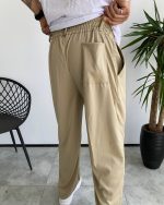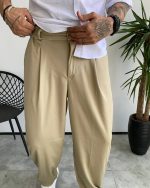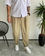 معرفی شلوار نیم بگ پارچهای مردانه رنگ خاکی