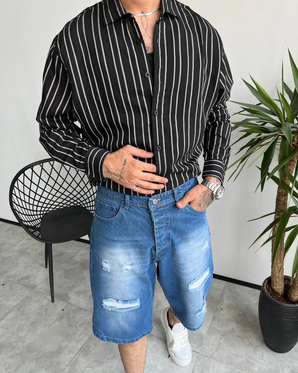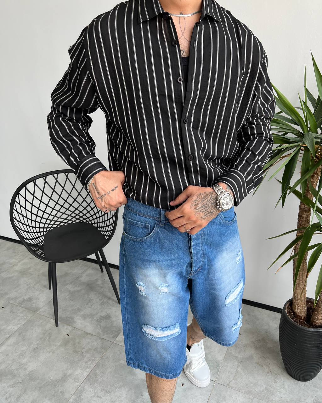 اگر به دنبال یک پیراهن لخت و سبک مردانه برای فصل گرم هستید که استایلی مینیمال و شیک ارائه دهد، این مدل دقیقاً همان چیزی است که به آن نیاز دارید. طراحی راهراه باعث میشود اندام کشیدهتر دیده شود و رنگ مشکی با خطوط سفید، استایل را تمیز و مرتب نشان میدهد.