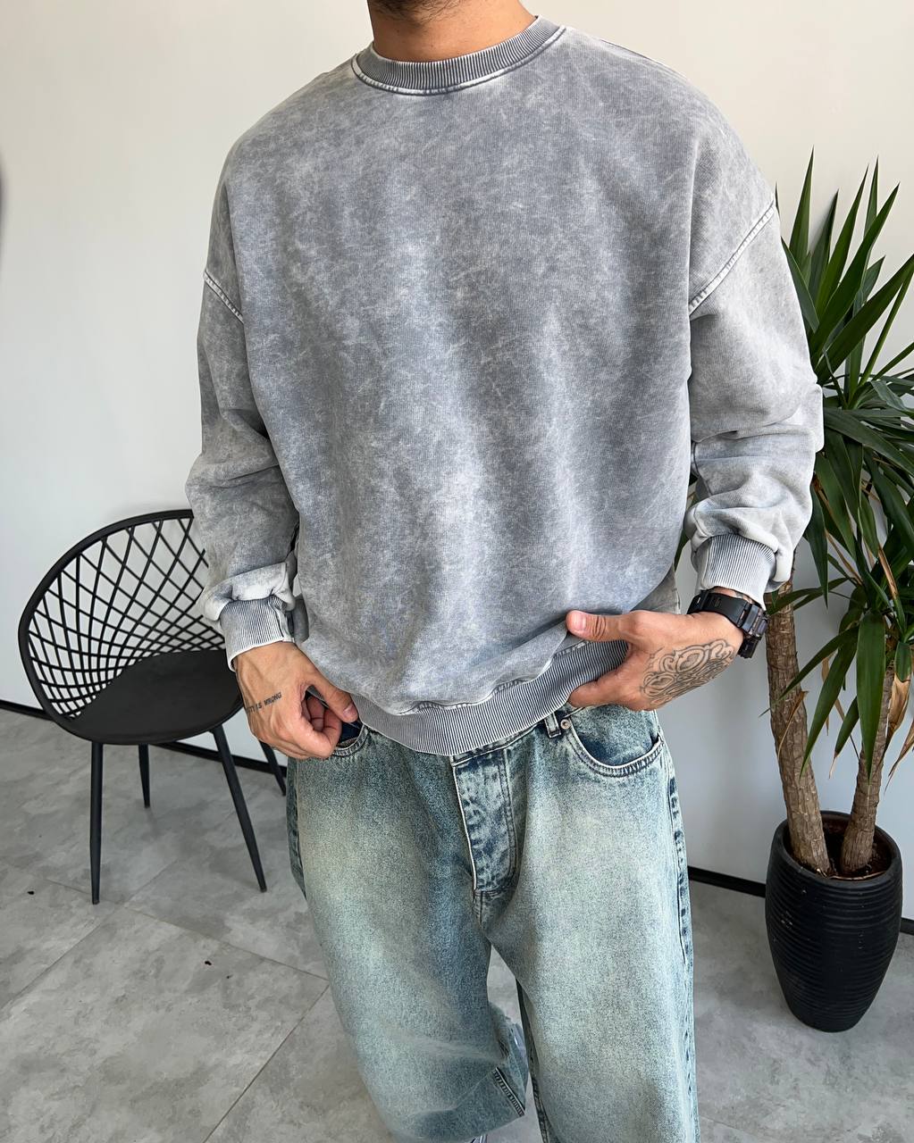 👕 دورس یقه گرد سنگشور ساده رنگ طوسی روشن | انتخابی مینیمال و مدرن برای مردان