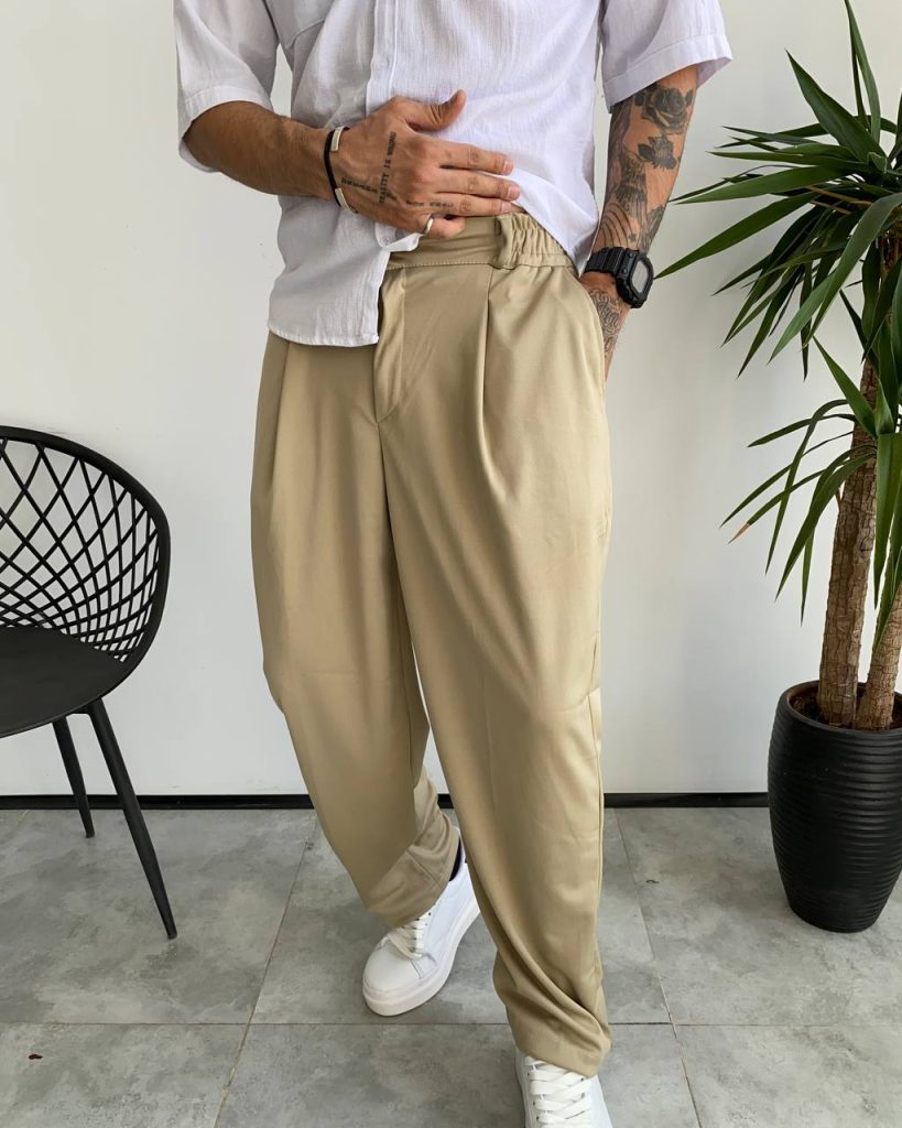 شلوار نیم بگ پارچه ای رنگ خاکی کد 5300