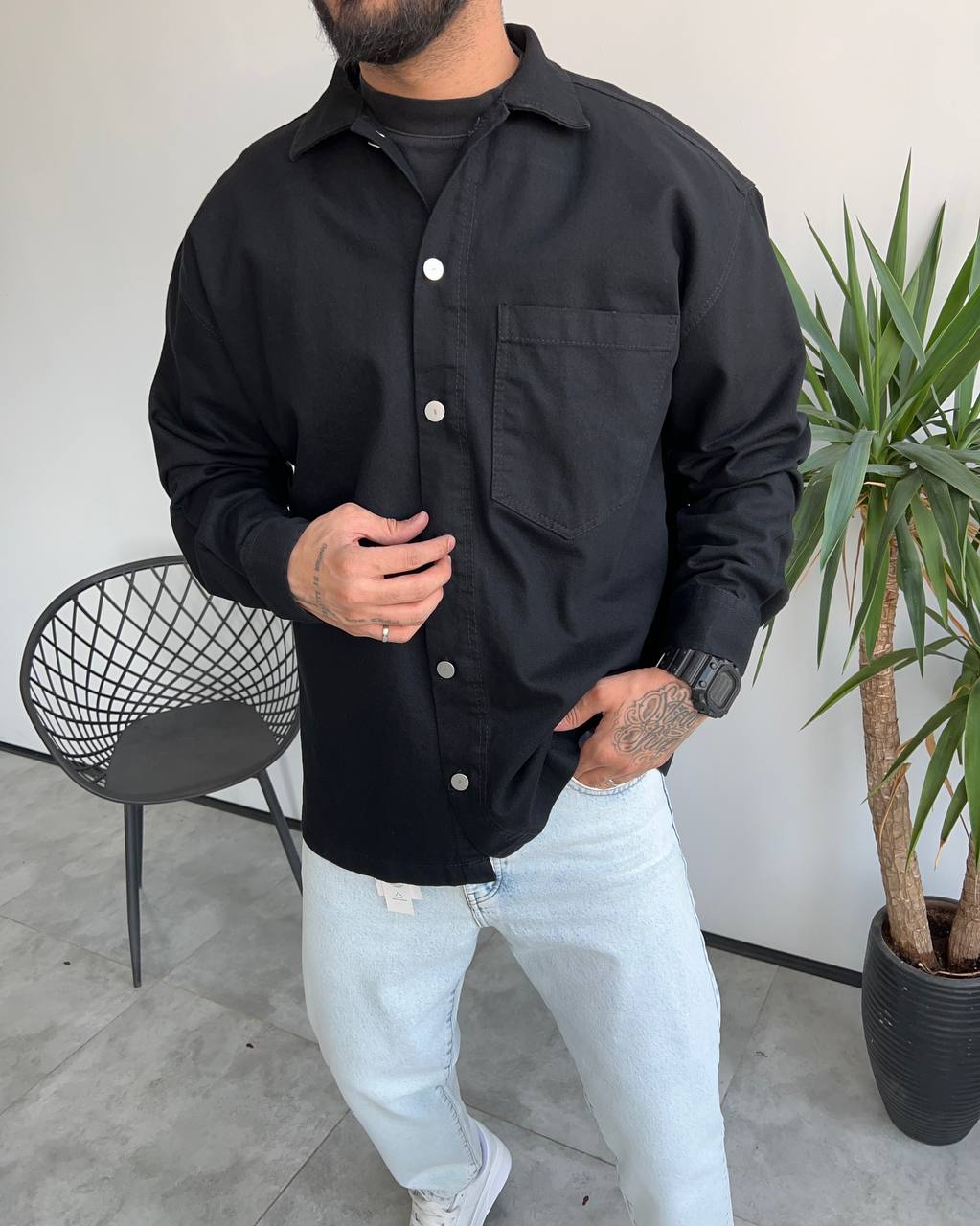 🖤 کت جین مردانه تک جیب ساده مشکی کد 5902