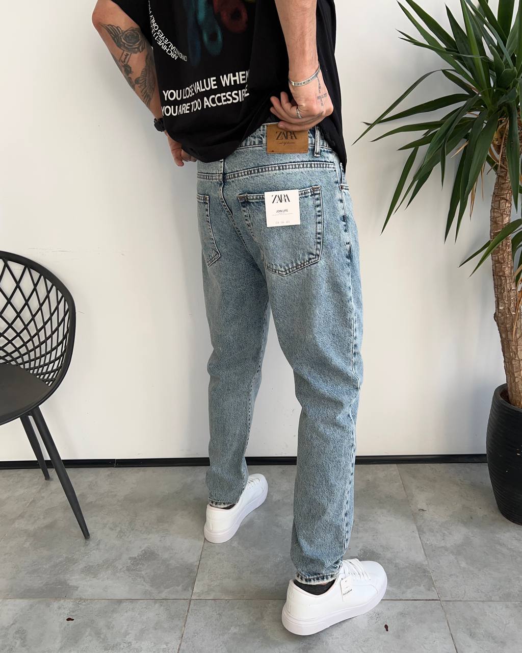 شلوار مام فیت ابی یخی ساده ZARA کد 5943